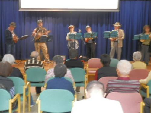 10月24日「イルジーポ+(プラス)」さんによる、ウクレレ伴奏に合わせ歌を披露していただきました。ポロロ~ン、としたウクレレの音色が素敵で懐かしい曲の選曲もよく、後半は一緒に歌い楽しい時間はあっという間でした。